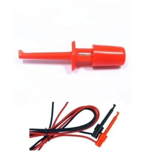 Measuring gripper - 40mm red - hook for electronics - test probe for gripping wires. A useful tool in every workshop for diagnostics of devices, we attach the grippers to the cables, so we have free hands and can perform other control and measurement work.Technical data