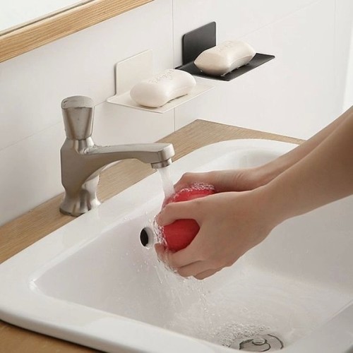 The soap dish can be stuck on tiles, furniture, a mirror, a wall or any other flat surface.