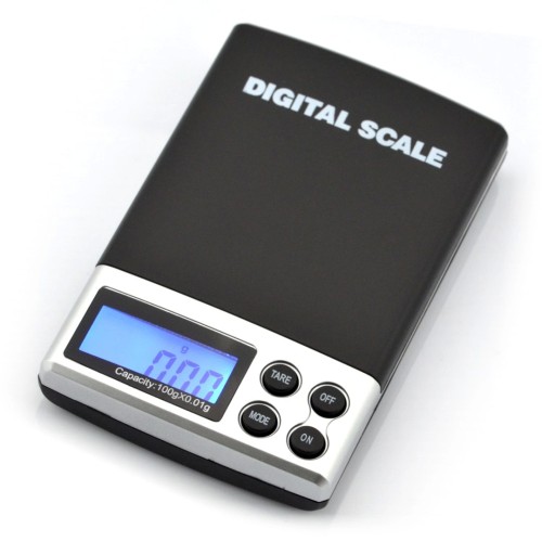 Pocket electronic scale with display, operating in the range of up to 100g, with an accuracy of 0.01g.