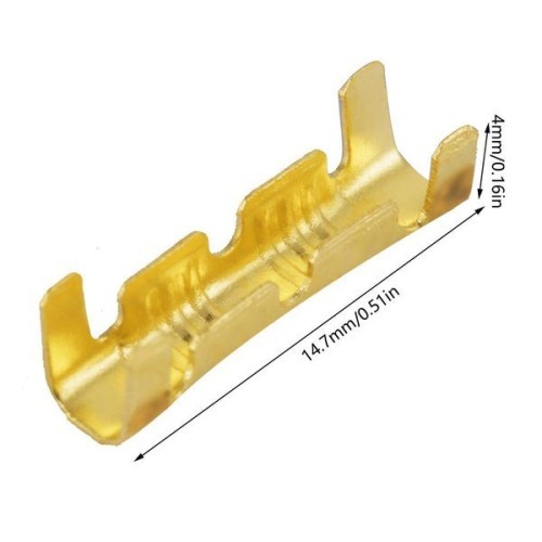 Non-insulated wire connector for mounting on a wire with a cross-section of 0.3 to 1.5 mm2. The wire connector is made of brass. Electric wires are crimped with a U-shaped end, creating permanent connections. This type of connector is often used in industry and automotive in a very wide range. Thanks to it, you can connect damaged or cut wires in an easy and durable way.