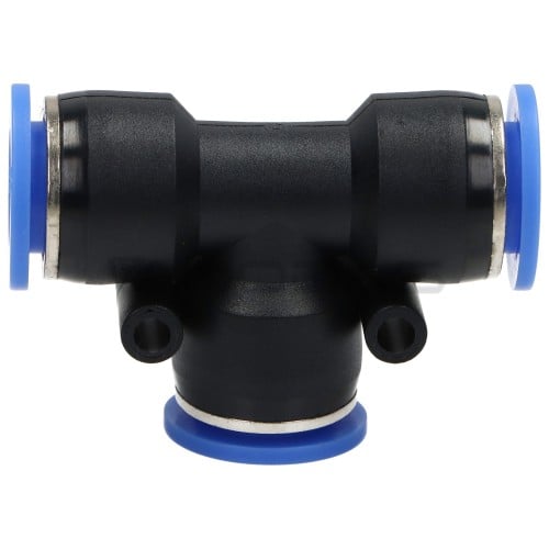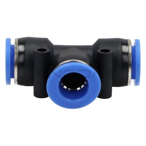 The pneumatic push-in tee is an essential element in pneumatic systems, enabling effective flow branching. Designed for a 4 mm diameter hose, it perfectly fulfills its role in various configurations. Made of durable PBT and nickel-plated brass, it provides durability and resistance to operating conditions. Designed for work with compressed air and vacuum, this tee guarantees operational reliability in the working pressure range from -0.95 to 15 bar. Ideal for applications with PU, PA, PE hoses, it offers durability and reliability in a wide temperature range, from -20°C to +70°C.