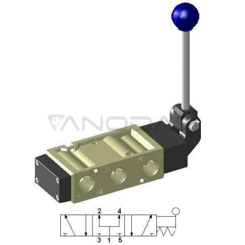 Pneumatic valve Lever 1/2" 5/3 Center Aerated HLV650-S