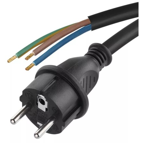 Power cable AC plug - solder terminals (3x1.5 mm²) 5.0m with rubber insulation (for tool cable replacement)