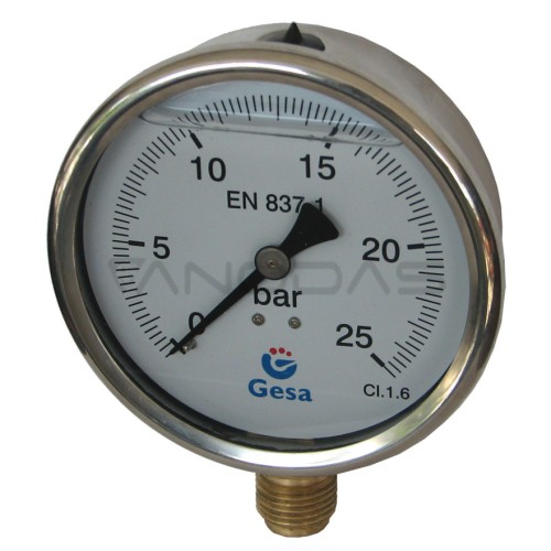Pressure gauge with Glycerin 100mm, 25 BAR MAG-100R-0020G