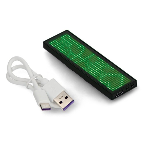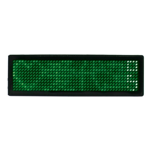 Programmable LED Name Tag 93x30mm - USB Text Display - Green