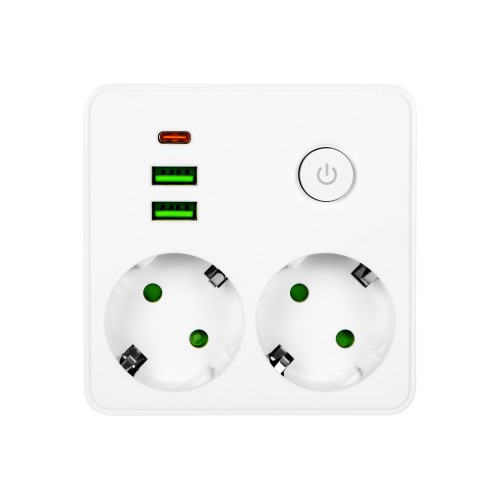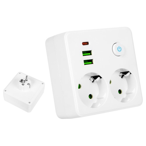 PS-210 2-Socket Splitter 2xUSB+USB-C White