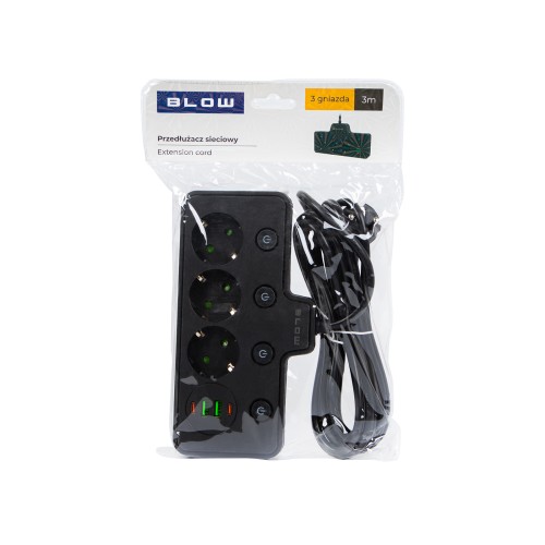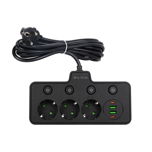 PS-310 Splitter 3-Sockets + 2xUSB + 2xUSB-C 3m black 3x1mm extension cable
