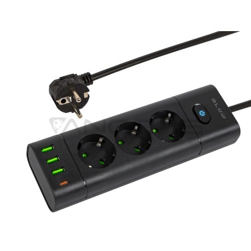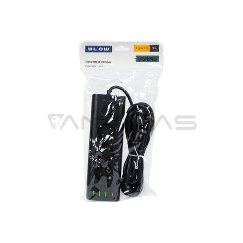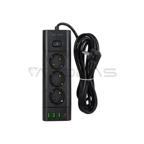 PS-350T 3-Socket Power Extension Cable 3xUSB+USB-PD 3m Black 3x1mm