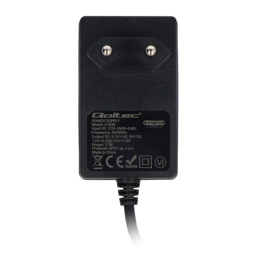 Qoltec Super Quick PD Power Supply - USB C 27W 5.1V/5A for Raspberry Pi 5 - Black
