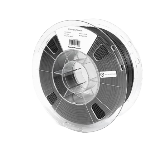Raise3D Industrial PET CF is a carbon fiber-reinforced composite filament based on PET (Polyethylene terephthalate). Well-dispersed 15% carbon fibers enhance the rigidity, strength, heat and chemical resistance of the PET matrix. After annealing, PET CF stabilizes its heat resistance at around 150 ºC and tensile modulus and strength of over 6 GPa and 80 MPa respectively. Compared to carbon fiber-reinforced Nylon filament, the high printability, dimensional stability, high creep resistance and low moisture absorption makes PET CF an ideal choice for reliable carbon fiber composite printing for strong and cost-effective end-use applications, such as jigs, fixtures, and functional parts.