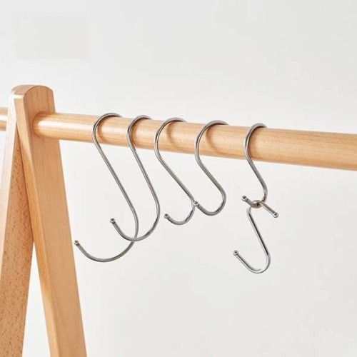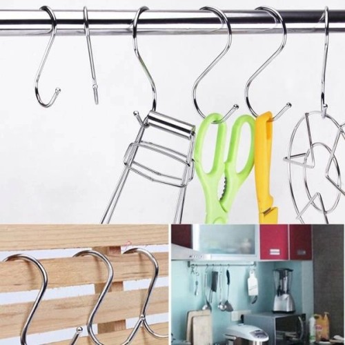 The S-type hook is a great solution for hanging kitchen or bathroom accessories, a towel, a brush and many different things. The metal hanger can be hung on a rail anywhere in the kitchen, in a closet, workshop or garage.