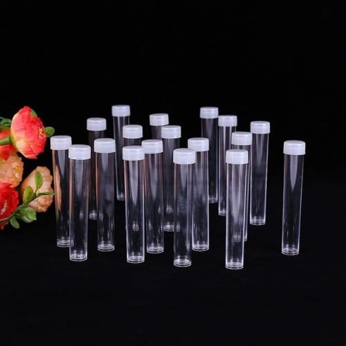 The 1 x 7.6 cm Sample and Capsule Container is an extremely slim 5 ml vial designed to hold small amounts of liquids or solids.
