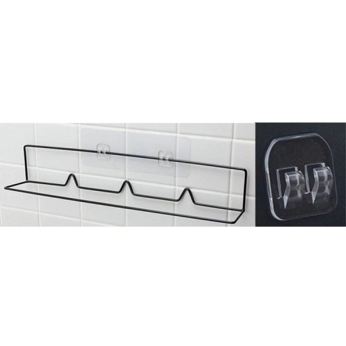 Self-adhesive wall mount with hooks is an excellent solution for hanging metal bathroom accessories, shelves, soapboxes, and many different things.