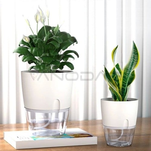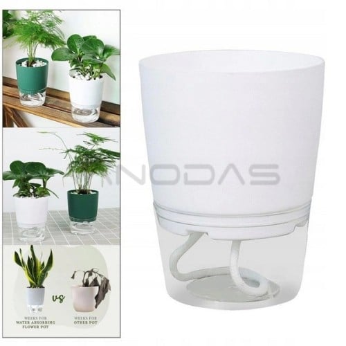 A white self-watering flower pot with an irrigation system is not only a practical solution for every plant lover, but also an aesthetic addition to any interior. With its help, indoor plants can grow healthy and strong, with minimal care required. Convenient for everyday use and matching any interior style, this flowerpot is an excellent choice for anyone who values beauty and functionality in their surroundings.