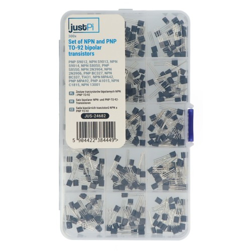 Set of NPN and PNP TO-92 bipolar transistors - 15 values - E49 - 300 pcs, - justPi