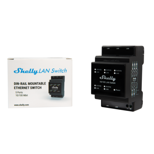 Shelly LAN Switch is a DIN-mountable Ethernet switch with 5 RJ45 ports. It offers a seamless solution to expand your network capabilities without the hassle of extensive rewiring. Engineered for reliability and performance, it ensures a consistent and stable direct network connection to your devices, providing you with peace of mind and confidence in your network infrastructure.