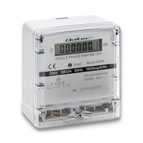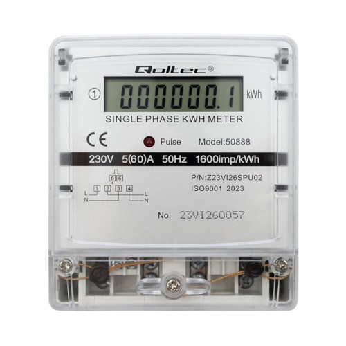 The Qoltec electronic energy meter is a precise device for monitoring power consumption in single-phase 230V installations. Equipped with a clear LCD display and LED indicator, it allows for real-time monitoring of energy consumption. With an accuracy class of 1.0 and easy DIN rail mounting, it's suitable for both home and industrial use.
