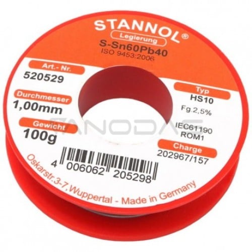 Solder wire SN60/PB40 1.00mm 100g with flux Stannol