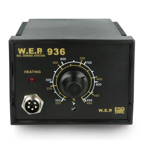 WEP 936 40W soldering station features an adjustable temperature range from 200°C to 480°C.