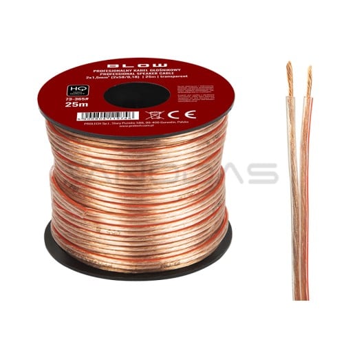 - Cable length: 25m - Wire size: 2x 1.5mm - Cable type: speaker - Transmitted signal: audio - Color: transparent High-quality speaker cable designed for home and professional studio and stage applications. This cable is distinguished by its reliability, high durability, and flexibility. It can be easily used to connect stage equipment, broadcast systems, car audio equipment, home theater equipment, and multi-room installations.