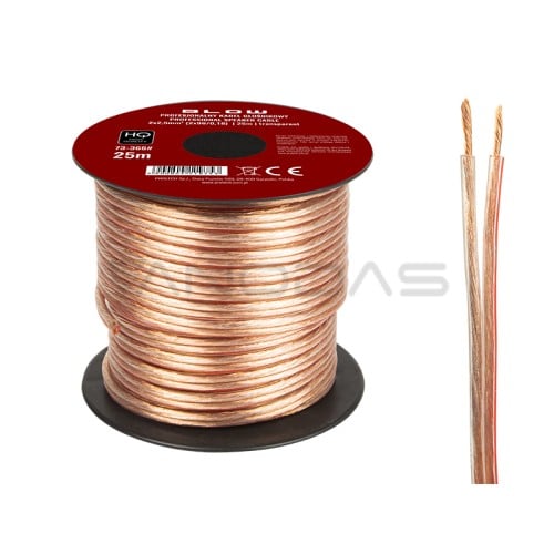 - Cable length: 25m - Cable size: 2x 2.5mm - Cable type: speaker - Transmitted signal: audio - Color: transparent High-quality speaker cable designed for home and professional studio and stage applications. This cable is distinguished by its reliability, high durability, and flexibility. It can be easily used to connect stage equipment, broadcast systems, car audio equipment, home theater equipment, and multi-room installations.