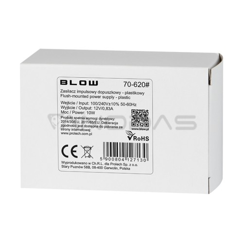 Housing color: black Certificates: CE, RoHS Dimensions: diameter 58mm x height 48mm x thickness 24mmCable length: 15cm Recessed watertight switching power supply with the possibility of installation in flush-mounted boxes. It is ideal for powering LED strips and modules, panels, strips or LED bulbs, as well as for many other electronic devices powered by 12V. The most important advantages: - Wide range of input voltages - High quality workmanship - Strong and durable housing - Necessary safety certificates - Wide range of applications - Sealing class: IP67 - Perfect for Ø60 junction boxes