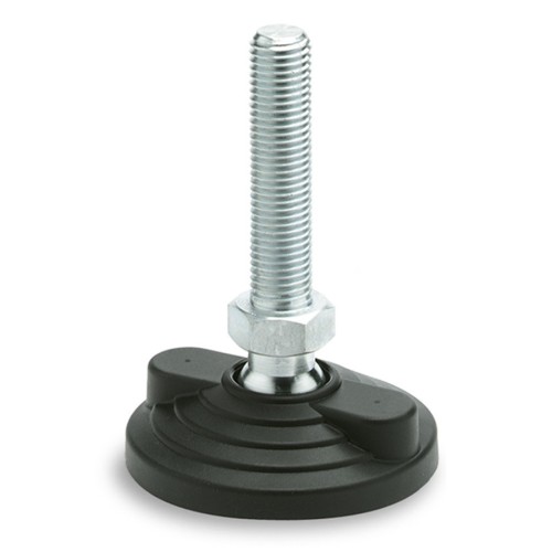 Swivel foot with anchoring holes LV.F-80-14-M12x68 - technopolymer base, threaded pin, steel, galvanized