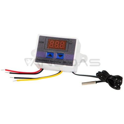 Digital thermostat and temperature controller. Equipped with a waterproof probe, it allows use in humid environments (aquariums and terrariums). It is also ideal for regulating the operating temperature of various devices. Easy installation and simple operation (2 physical buttons). The digital display allows you to directly see the set temperature, and the LED indicator shows when the relay is connected. Allows you to automatically adjust the temperature and measure from -50 to 110 degrees Celsius.
