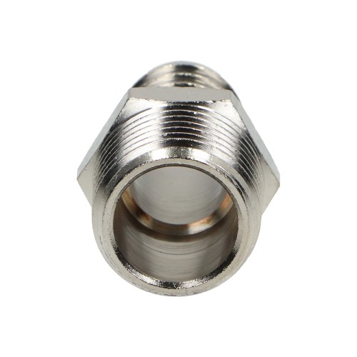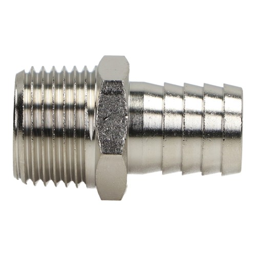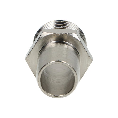 Threaded connector, ideal for various applications. It has a 16mm hose connection and a 1/2" external thread, enabling an effective and durable connection in industrial installations. Made of nickel-plated brass, which provides not only an aesthetic appearance, but also corrosion resistance. The maximum operating temperature of 300°C makes it suitable for the transfer of water, oil and compressed air in conditions requiring reliability and stability.