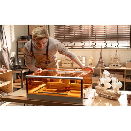 The TOOCAA L2 is a compact 10W laser plotter with a 415 x 395 mm work area and an engraving speed of up to 400 mm/s. It allows for precise cutting and engraving of wood, acrylic, leather, metal, and other materials. It works with Toocaa Studio and LightBurn software and runs on Windows, macOS, and Linux. Its robust aluminum and acrylic construction ensures stability and durability. Ideal for hobbyists, makers, and small businesses looking for a versatile and safe laser plotter.
