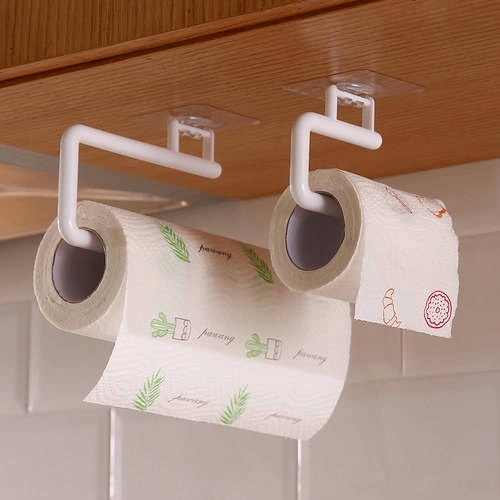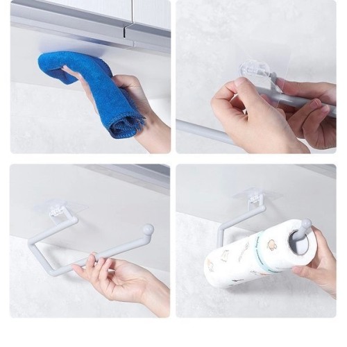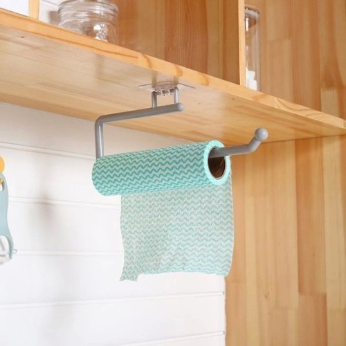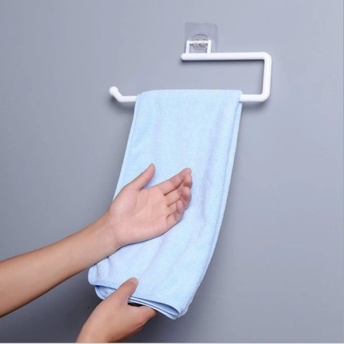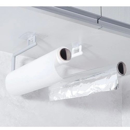 A holder for towels, cloths, paper towels and foil is a great solution for hanging kitchen or bathroom accessories. The hanger can be stuck on tiles, furniture, a mirror, a wall or any other flat and smooth surface.