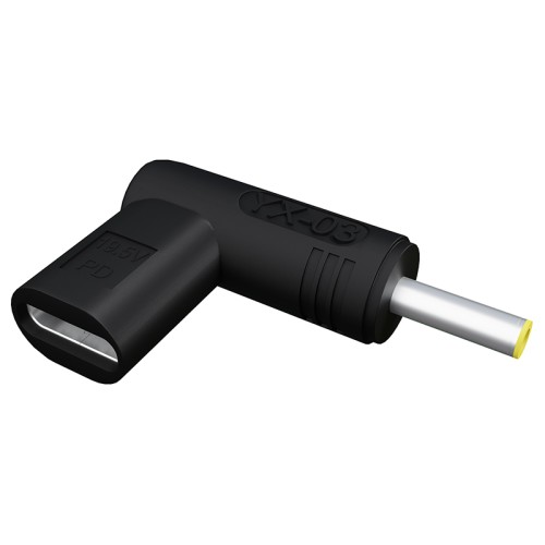 The USB-C adapter - DC 1.7x4.0 plug is a functional device for a laptop. Designed for laptops with a 1.7x4.0mm port. The adapter will allow you to charge laptops with a voltage of 19.5V. The adapter fits a laptop power supply with a Type-C connector.