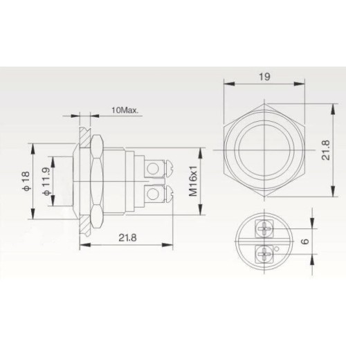 Vandal-proof button PBW-16BKS - monostable - 2A 250V - flat button