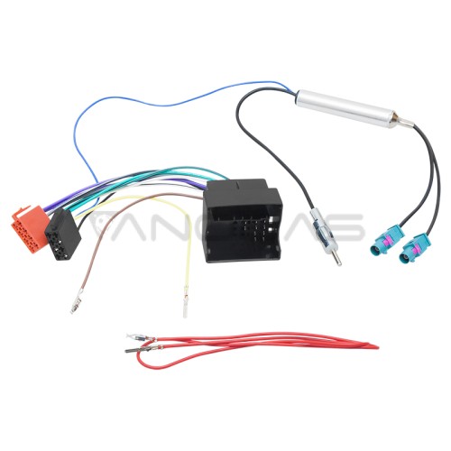 Connector with an antenna separator for connecting different radio models to the factory 2xFakra - DIN audio installation in Seat, Skoda, VW models.