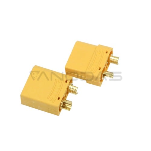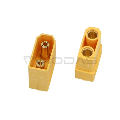 The XT90 high-current connector, thanks to its small dimensions, is ideal for powering models and electronic systems. The large gold-plated contact surface makes them perfect for applications requiring high currents. The soldered connector design allows for a secure and stable connection.