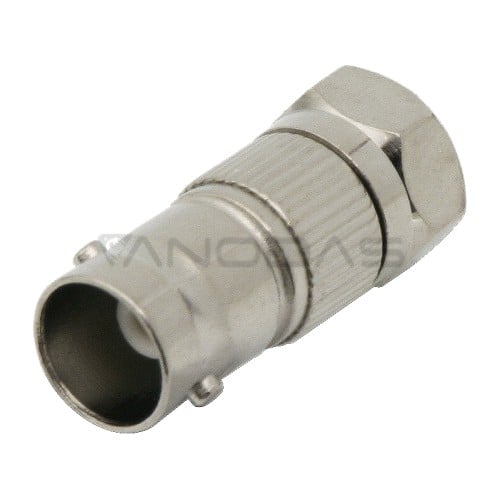 Perėjimas baigėsi „F“ kištuku vienoje pusėje ir BNC lizdu kitoje.