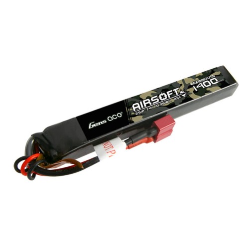 Gens Ace 25C 1400mAh 2S1P 7.4V Airsoft Gun Lipo baterija su T formos jungtimi sukurta specialiai Airsoft ginklams maitinti. Jis tinka buferiniams vamzdeliams ir AEG, kur baterija yra ribota neprarandant galios. Tinka LE kolbai, tokiai kaip M4 ir kt.