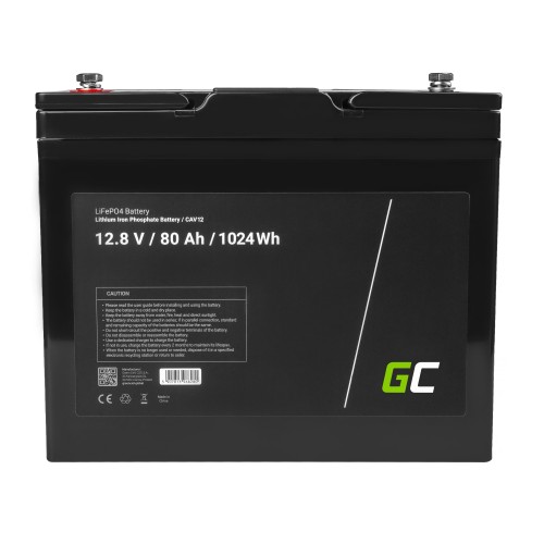 Green Cell ličio jonų akumuliatorius 12V 12.8V 80Ah skirtas fotovoltinėms sistemoms kemperiams ir valtims