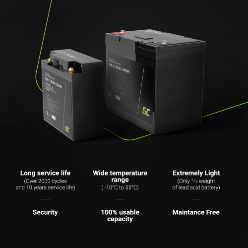 Green Cell ličio jonų (LiFePO4) akumuliatorius 12 V 12.8 V 50 Ah, skirtas fotovoltinėms sistemoms, kemperiams ir valtims