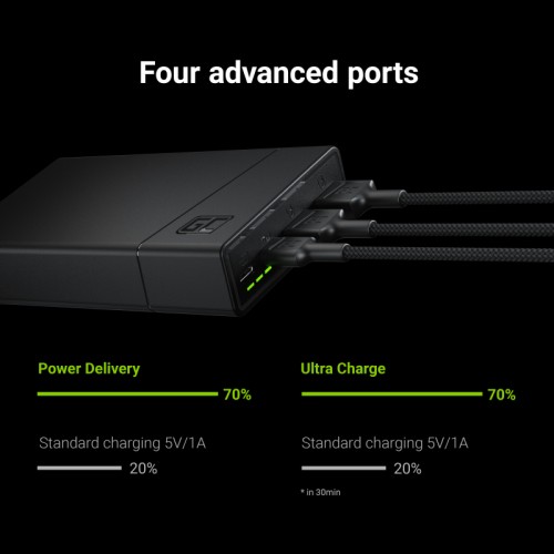 Aukštos kokybės Green Cell baterija, kurios talpa 20000 mAh. Leidžia įkrauti iki trijų įrenginių vienu metu. Dvi A tipo USB prievadai naudoja Ultra Charge technologiją, o C tipo USB jungtis yra suderinama su Power Delivery 18W standartu. PowerPlay20 yra lengvas, turi patvarų korpusą Li-Pol ląstelė. Prietaisas turi apsaugą nuo trumpojo jungimo, gilaus iškrovimo, perkrovimo ir perkaitimo.