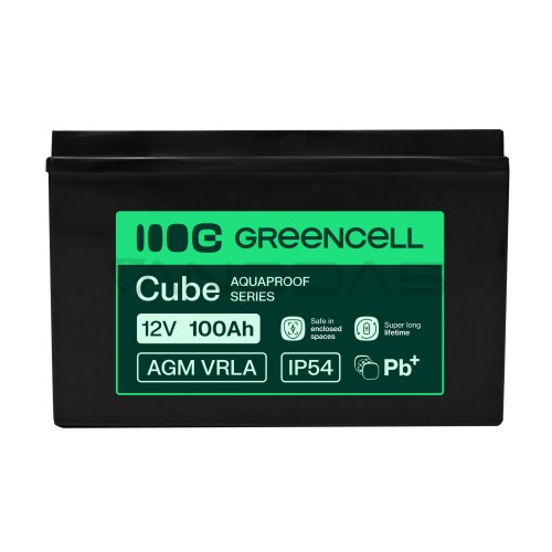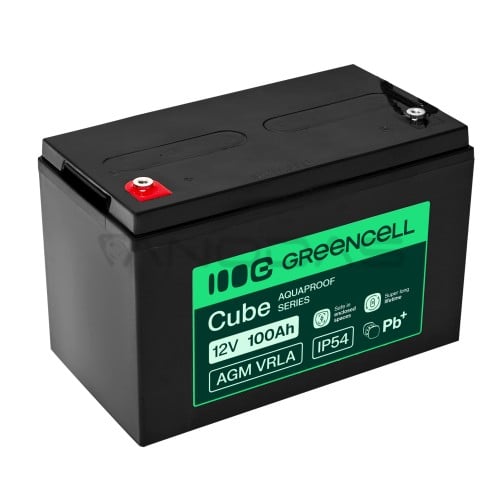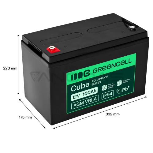 Greencell AGM VRLA 12 V 100 Ah nereikalaujantis priežiūros akumuliatorius UPS, svarstyklėms, kemperiams (332 x 175 x 220 mm)