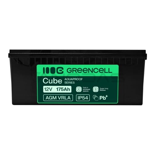 Greencell AGM VRLA 12 V 175 Ah nereikalaujantis priežiūros akumuliatorius valtims, fotovoltinėms sistemoms, saulės baterijoms (532 x 207 x 220 mm)