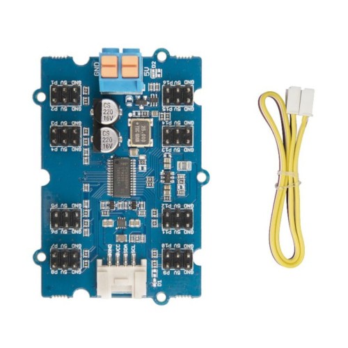 Grove serijos modulis su tiksliu 12 bitų PWM signalų generatoriumi. Leidžia valdyti iki 16 servo naudojant išorinį maitinimo šaltinį. Sąveikai jis naudoja I2C sąsajos linijas. Šią plokštę galite naudoti kaip LED valdiklį. Plokštėje yra pasirenkami adresai nuo 0x40 iki 0x7f. Veikia esant 3,3 V ir 5 V įtampai.