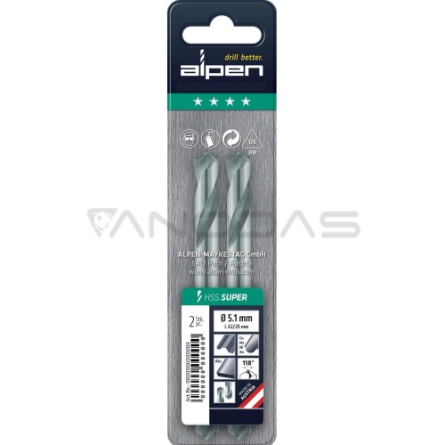 HSS PLW metalo grąžtas fi 4.50 Alpen - 2 vnt
