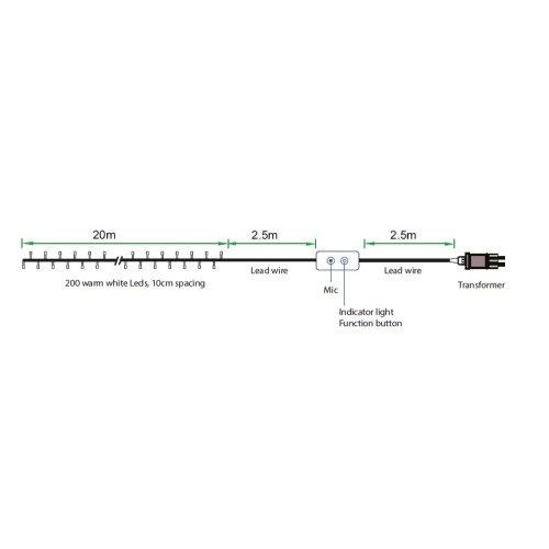 Švytėjimas pagal muzikąIšmanioji LED girlianda R5151 turi integruotą mikrofoną ir gali linksmai mirgėti pagal muzikos ritmą.