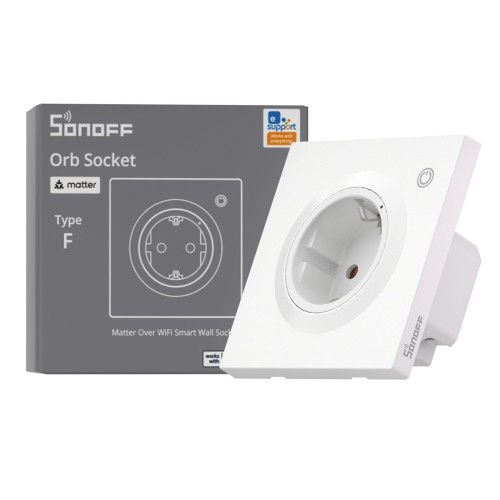 Išmanusis sieninis lizdas Sonoff WS01TPF-E, suderinamas su Matter over Wi-Fi protokolu, leidžiantis integruoti jį į įvairių gamintojų išmaniųjų namų sistemas (pvz., Apple Home, Google Home, Alexa). Tai suteikia galimybę centralizuotai valdyti prijungtus įrenginius bei automatizuoti jų veikimą.