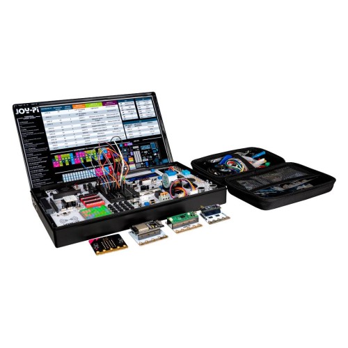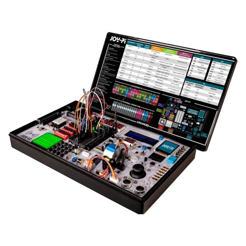„Joy-Pi Advanced“ yra išsami edukacinė platforma ir kūrimo rinkinys, skirtas mokytis elektronikos, programuoti ir dirbti su mikrovaldikliais. Įrenginyje integruota daugiau nei 30 modulių, jutiklių ir vykdiklių, keli ekranai ir jungiklių sistema, leidžianti vienu metu valdyti kelis komponentus. Platforma suderinama su „Raspberry Pi 4“, „Raspberry Pi Pico“, „Arduino Nano“, „NodeMCU ESP32“ ir „BBC micro:bit“ bei kitais įrenginiais, todėl galima įgyvendinti edukacinius ir prototipų kūrimo projektus, nereikalaujant kurti sistemų nuo nulio.