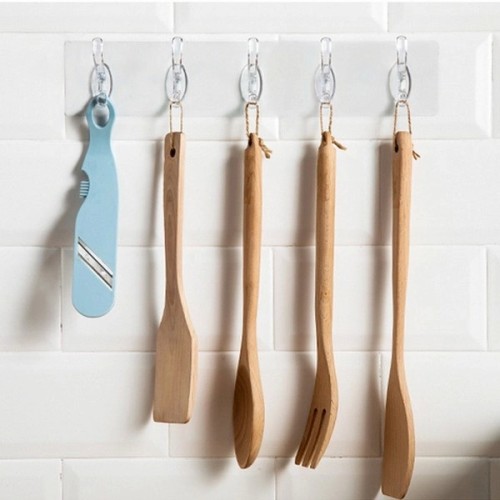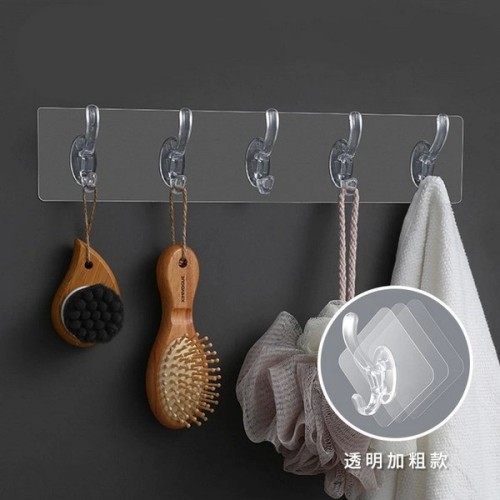Penkių skaidrių, lipnių dvigubų 50x6,5 cm kabliukų rinkinys yra idealus sprendimas efektyviai išnaudoti erdvę namuose, biure ar garaže.