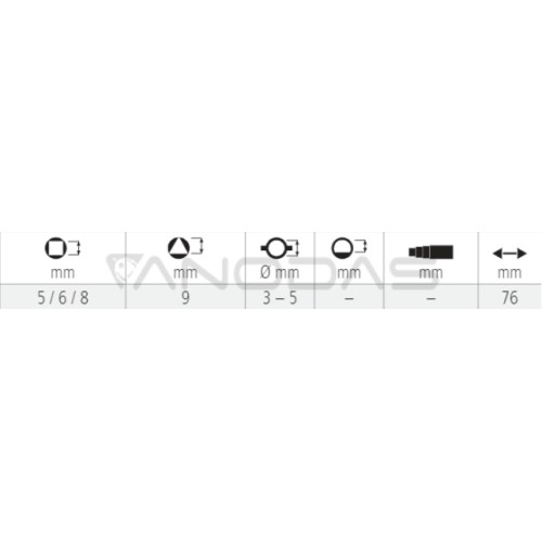 Pagrindiniai elementai:- atsuktuvo antgalis plokščiu profiliu 1,0 x 7 mm ir skersiniu profiliu PH2