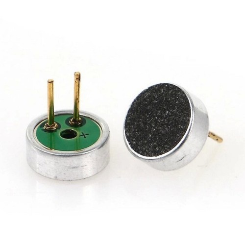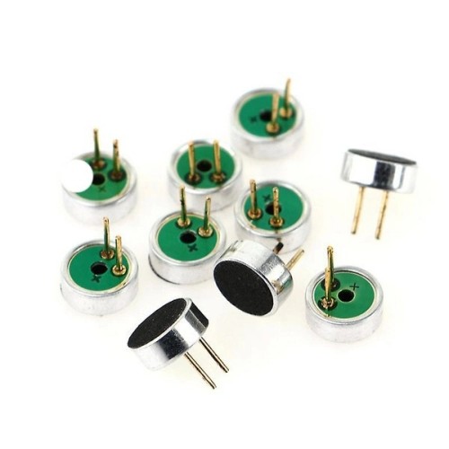 Miniatiūrinis kondensacinis mikrofonas, kurio matmenys 6x2,2 mm, skirtas naudoti įvairių tipų projektuose.